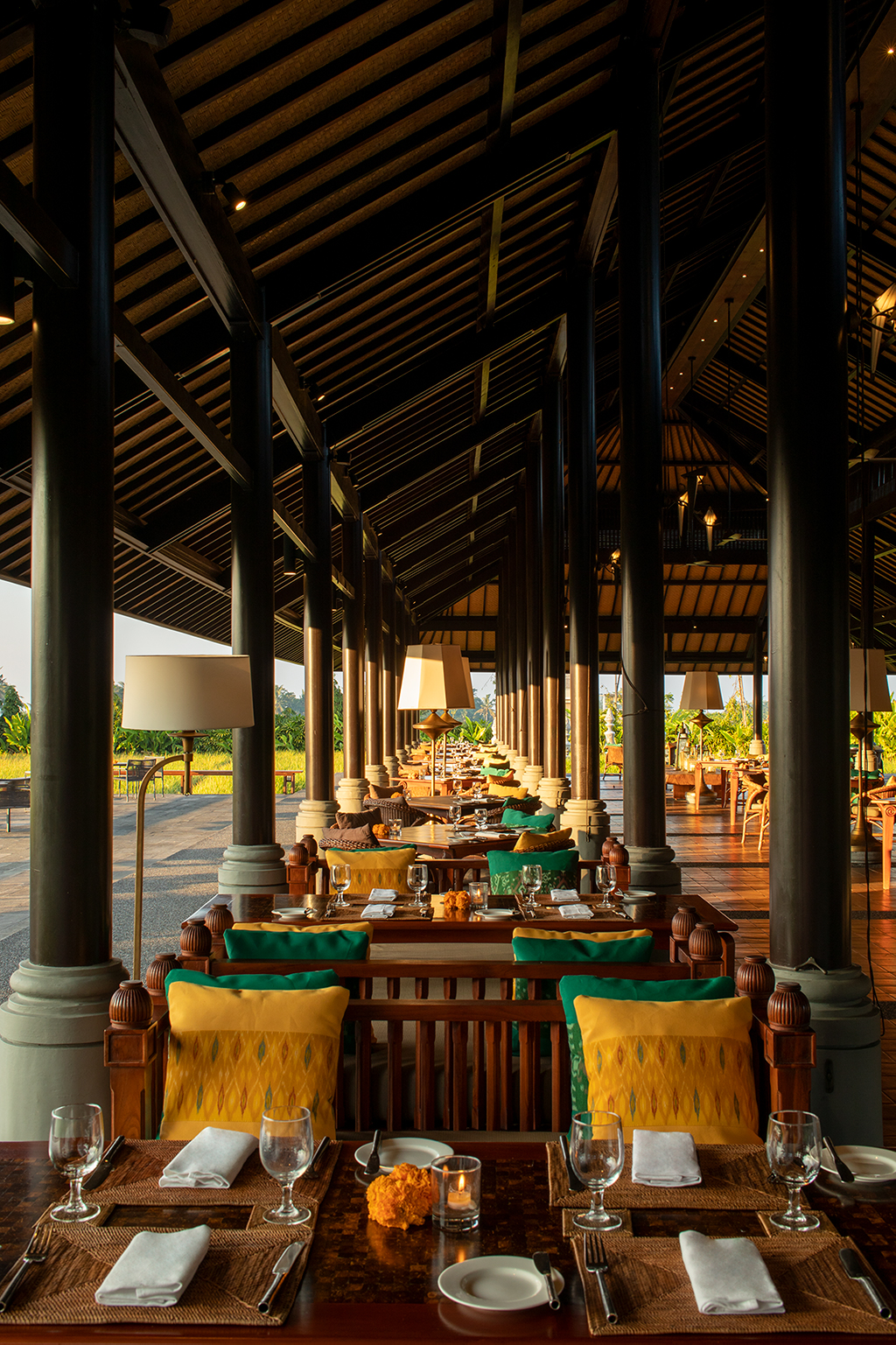 Indulge in our premium tea and coffee selections accompanied by our favourite savouries from East to West: Balinese-spiced tuna satay, chicken curry puffs and finger sandwiches and as well as sweet treats such as Valrhona chocolate cake, mixed fruit tarts, jackfruit fritters and tiramisu. This relaxed yet sophisticated unwind amidst Balinese architecture and Hendra Hadiprana’s Indonesian art collection at The Tempayan restaurant offers a pleasantly indulgent transition into the evening ahead.